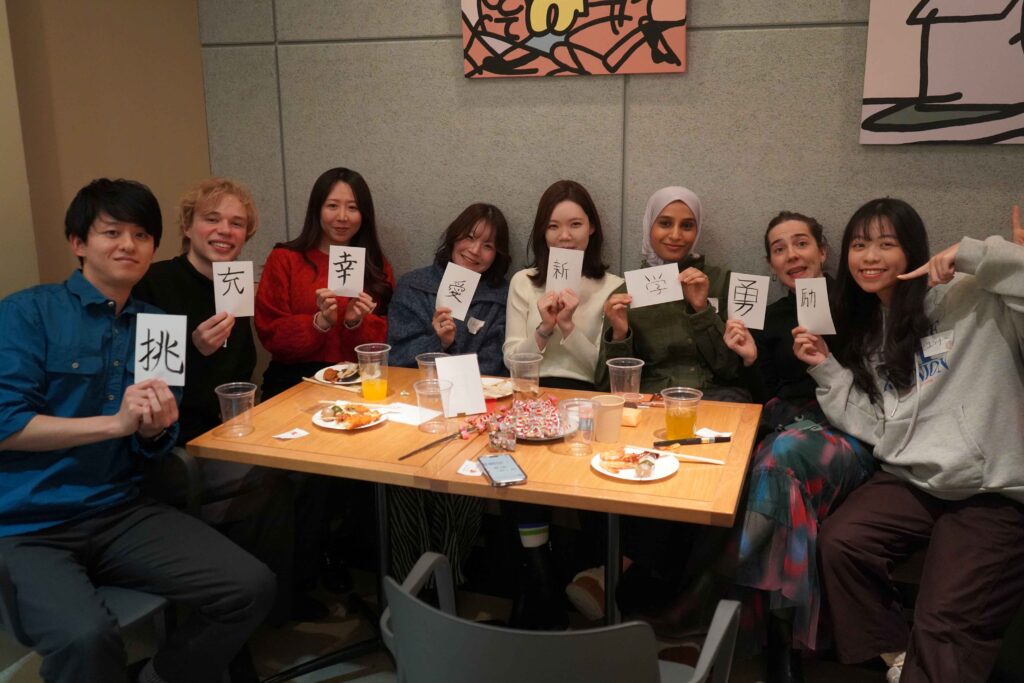 日本の伝統である「今年の漢字」にならい、自分の2026年を表す一文字を選び、 その意味や想いを各国のメンバーと分かち合うという、文化を超えた交流ゲーム。